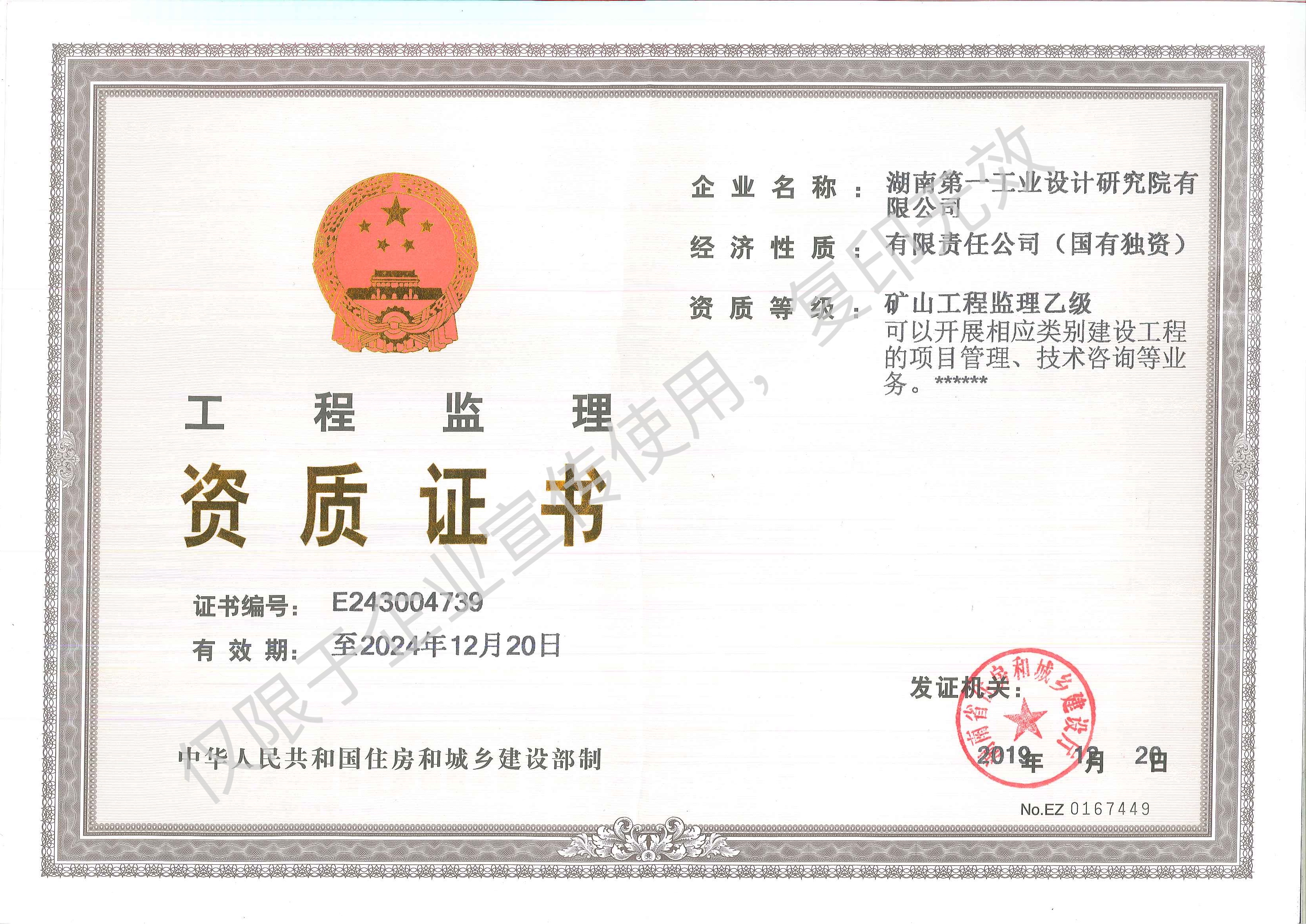 工程監(jiān)理企業(yè)資質(zhì)證書