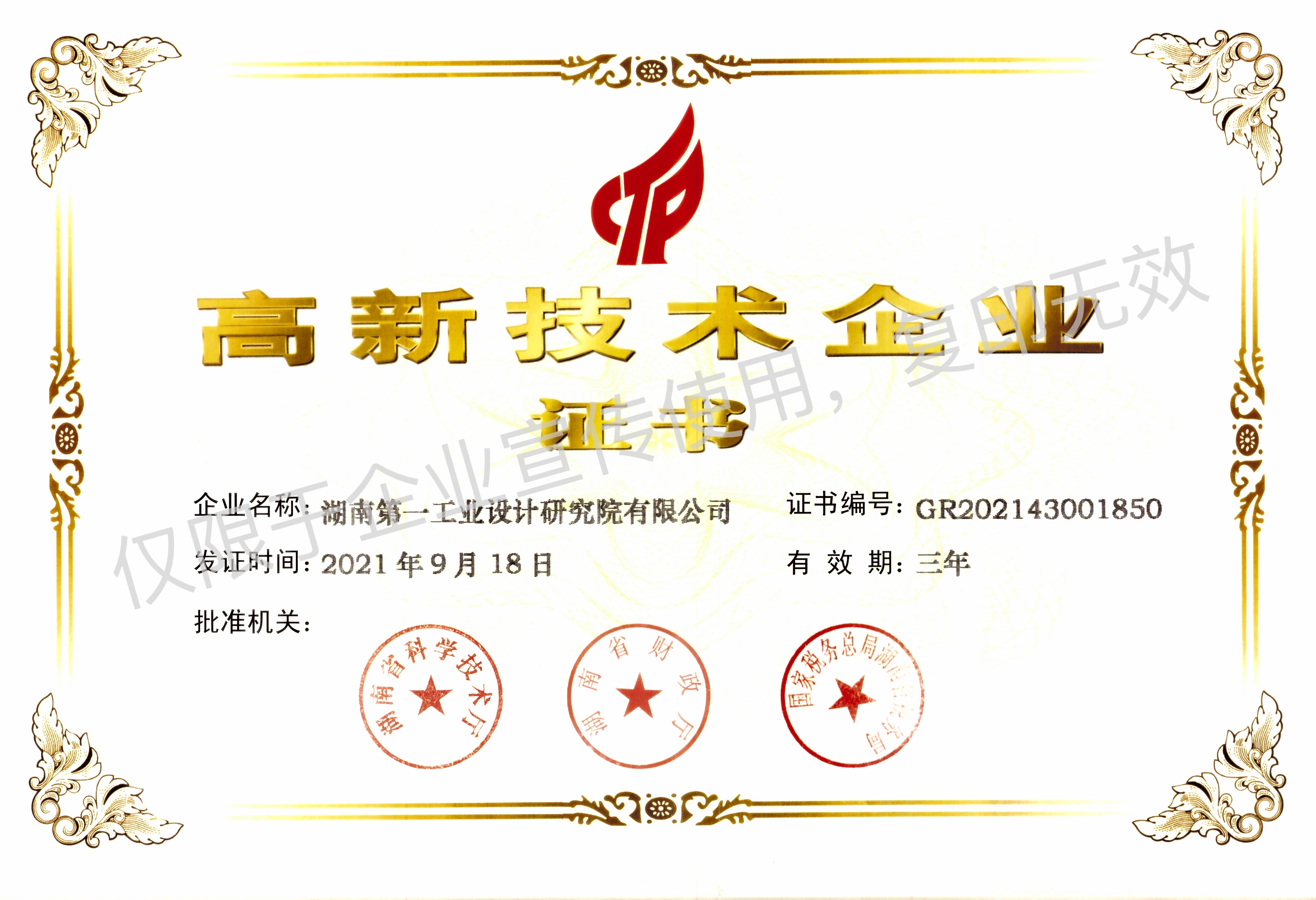 高新技術(shù)企業(yè)證書